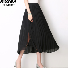 半身裙女春夏2017新款女装中长款百褶裙雪纺网纱开叉半身裙长裙子