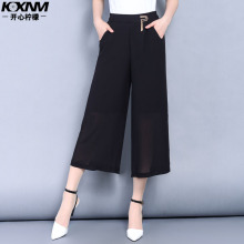 开心柠檬春夏季女薄款雪纺阔腿裤休闲裤黑色纱网中腰直筒裤九分裤
