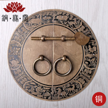 花式圆形门牌拉手柜门拉手 仿古十二生肖中式纯铜明清铜配直径14