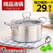 正品不锈钢汤锅加厚复底双耳小火锅煮面炖锅子家用电磁炉通用锅具