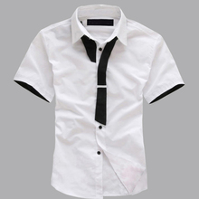 2017新款时尚男士夏季短袖衬衫男 男装青年纯色假领带衬衣潮