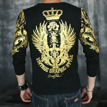 男士烫金长袖T恤 翅膀个性图案体恤潮流修身圆领上衣纯棉小衫