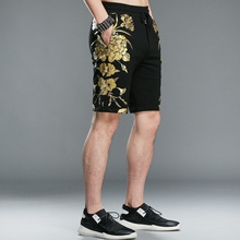 中国风夏季香港潮牌树叶图案修身休闲裤运动裤五分裤松紧带男短裤
