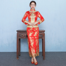 2017新款唐装夏春季新娘中式结婚礼服长袖长款红色旗袍裙敬酒服女