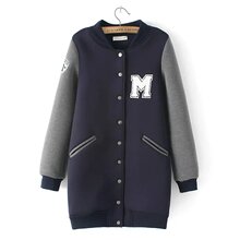 2017秋冬女新款韩版M字母贴布中长款立领棒球服百搭太空棉外套潮
