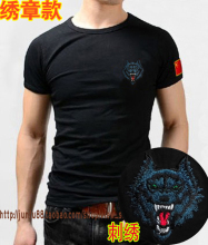 刺绣精品军绿V领刺绣特种兵T恤红旗男紧身修身军装迷彩服背心短袖