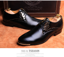 兽康春秋韩版尖头小皮鞋潮流发型师影楼婚纱休闲男皮鞋黑色西装鞋