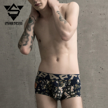 潮男内裤时尚性感U凸低腰平角裤纯棉运动修身碎花青年四角裤大码
