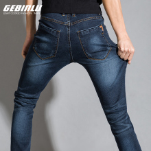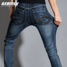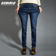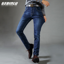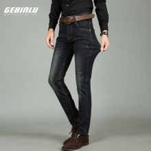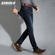 哥宾路秋冬季厚款高弹力牛仔裤男修身直筒长裤子青年中腰大码裤子