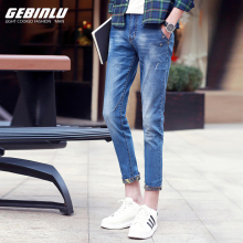 春夏季九分裤男士牛仔裤韩版修身款小脚裤男弹力英伦风9分裤子潮