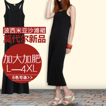 特大码加肥加大码新品吊带连衣裙修身工字背心长裙波西米亚沙滩裙