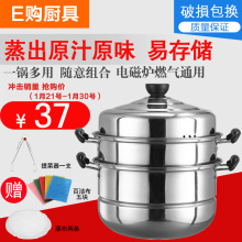 正品E购三层蒸锅不锈钢蒸锅多层加厚汤锅蒸笼蒸格电磁炉燃气通用