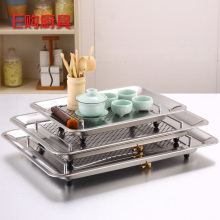 绍兴不锈钢茶盘茶池托盘加厚蓄水沥水方形双层茶台茶具套装 包邮