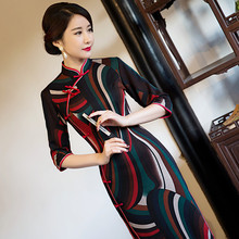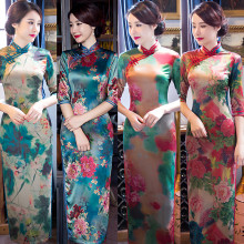 长款旗袍丝绸2016新款日常改良时尚中袖长旗袍连衣裙复古宴会显瘦