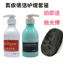 水仙真皮洁净乳去污膏+水仙真皮乳膏护理液组合套装鞋油 送抛光擦