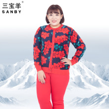 三宝羊女士加肥加大码双层保暖内衣套装加厚加绒妈妈装开衫外穿冬