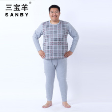 三宝羊秋冬男士加肥加大薄款保暖内衣纯棉秋衣秋裤套装男薄棉毛衫