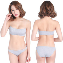 无肩带抹胸裹胸无钢圈性感隐形文胸套装学生美背少女内衣聚拢定型