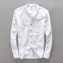 夏季薄款亚麻衬衫潮男长袖修身棉麻衬衣休闲白衬衫男打底麻布上衣