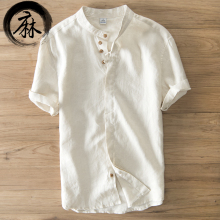 2016新款夏季亚麻衬衫男士薄款短袖衬衣宽松休闲中国风寸衣复古潮