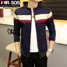 春季立领夹克男士休闲外套学生拼色棒球衫大码男装青年潮流外衣服