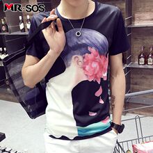 夏季薄款青年印花短袖t恤韩版修身潮男装日系男士半袖圆领打底衫