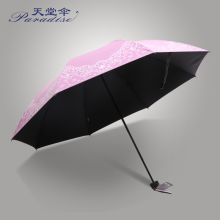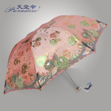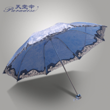 天堂伞防晒防紫外线女遮阳伞蕾丝太阳伞三折伞绣花伞两用晴雨伞