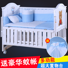 亮贝贝婴儿床实木可变书桌儿童床多功能白色婴儿摇篮宝宝床送蚊帐