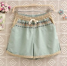 日系森女系 14年夏季 新款女装 拼接松紧腰 休闲宽松短裤 休闲裤