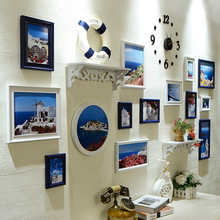 现代简约地中海照片墙 欧式客厅创意置物架挂墙相框墙组合 相片墙