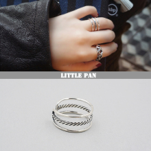 925纯银韩国定制简约线条开口斜纹三线复古素银泰银戒指指环情侣