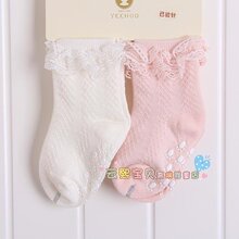 英氏袜春秋款女宝宝女童婴幼儿童蕾丝花边中筒袜短腰袜子0-5岁