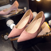 2016夏季新款粗跟中跟尖头女鞋绒面方跟深口韩版职业工作鞋OL单鞋
