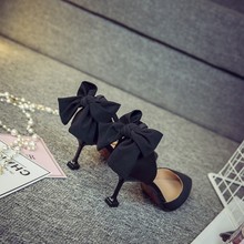 秋季性感单鞋红色婚鞋细跟浅口高跟鞋蝴蝶结公主中跟女黑色工作鞋