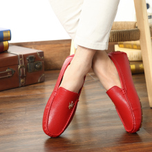 2017新款男士豆豆鞋春季休闲皮鞋真皮英伦百搭透气红色懒人鞋夏季