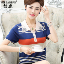 2016中老年女夏装短袖T恤妈妈装夏季新品宽松大码中年针织衫上衣