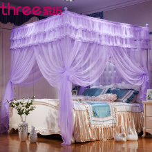 欧式三开门不锈钢落地加密宫廷方顶公主蚊帐1.5米/1.8m床双人家用