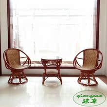 琼草天然藤椅子组合三件套阳台圈椅休闲靠背椅沙发椅懒人椅转椅