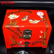 姚红饰品21厘米三层结婚礼品木质漆器鸳鸯首饰收纳盒平遥漆器礼品