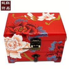 姚红饰品漆器玉兰牡丹收纳盒带锁首饰盒木质结婚梳妆盒礼品
