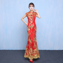 2016新款红色蕾丝长款鱼尾礼服旗袍春夏新娘结婚敬酒服宴会晚礼服