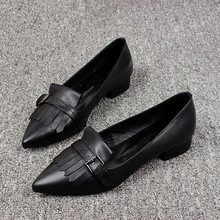 欧洲站2017春秋真皮尖头流苏女单鞋套脚浅口低帮鞋平底一脚蹬瓢鞋