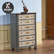 美式斗柜 乡村田园柜地中海斗柜 彩绘复古六斗柜储物柜抽屉柜