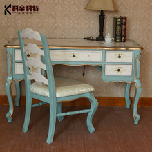 美式书桌书法桌地中海书桌乡村仿古书桌书房桌卧室书桌配椅子套组
