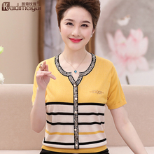 夏季妈妈装短袖40-50岁中年人时尚条纹T恤衫中老年女装夏装宽松