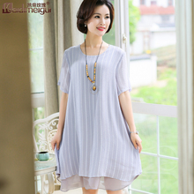 中老年女装短袖裙子中长款时尚40-50岁中年宽松妈妈装夏装连衣裙