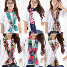 韩版女丝巾春秋夏季雪纺长款围巾沙滩巾空调防晒披肩纱巾百变印花