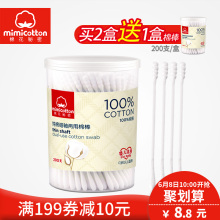 棉花秘密婴幼儿棉棒宝宝细轴棉棒新生儿棉花棒双头清洁棉签200支
