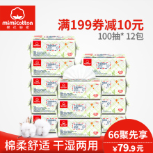 棉花秘密纯棉柔巾婴儿干湿两用巾干湿巾非湿巾宝宝纸巾100抽12包