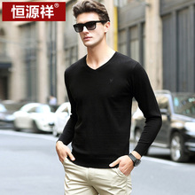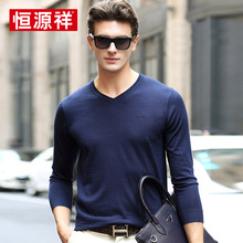 恒源祥羊毛衫男士毛衣薄款V领T青年长袖打底衫秋套头针织衫韩版潮